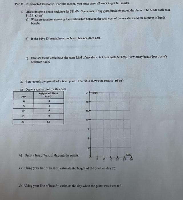 Solved Part B Constructed Response For This Section You Chegg Com