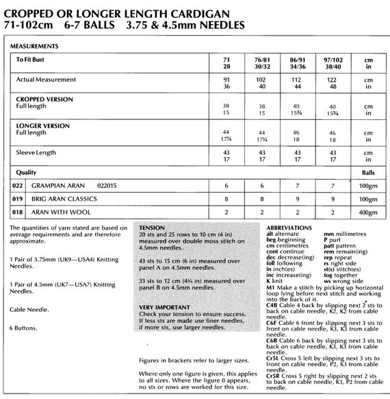 Womens Aran Cardigan Knitting Pattern Pdf Ladies 28 30 32 Etsy Uk