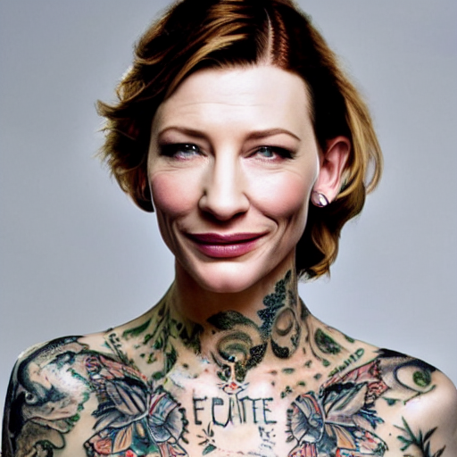 Prompthunt High Resolution Image Of Cate Blanchett With Full Body Tattoo Highly Detailed Photorealistic 4k